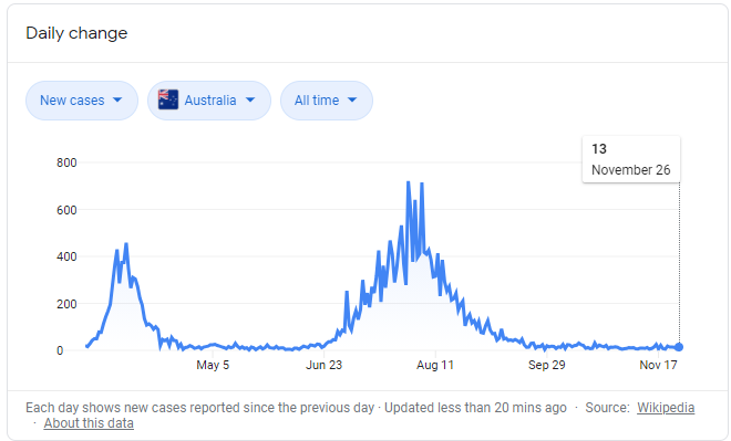 (澳大利亚新冠新增病例,数据来源:Wikipedia)