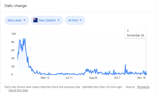 (新西兰新冠新增病例,数据来源:Wikipedia)