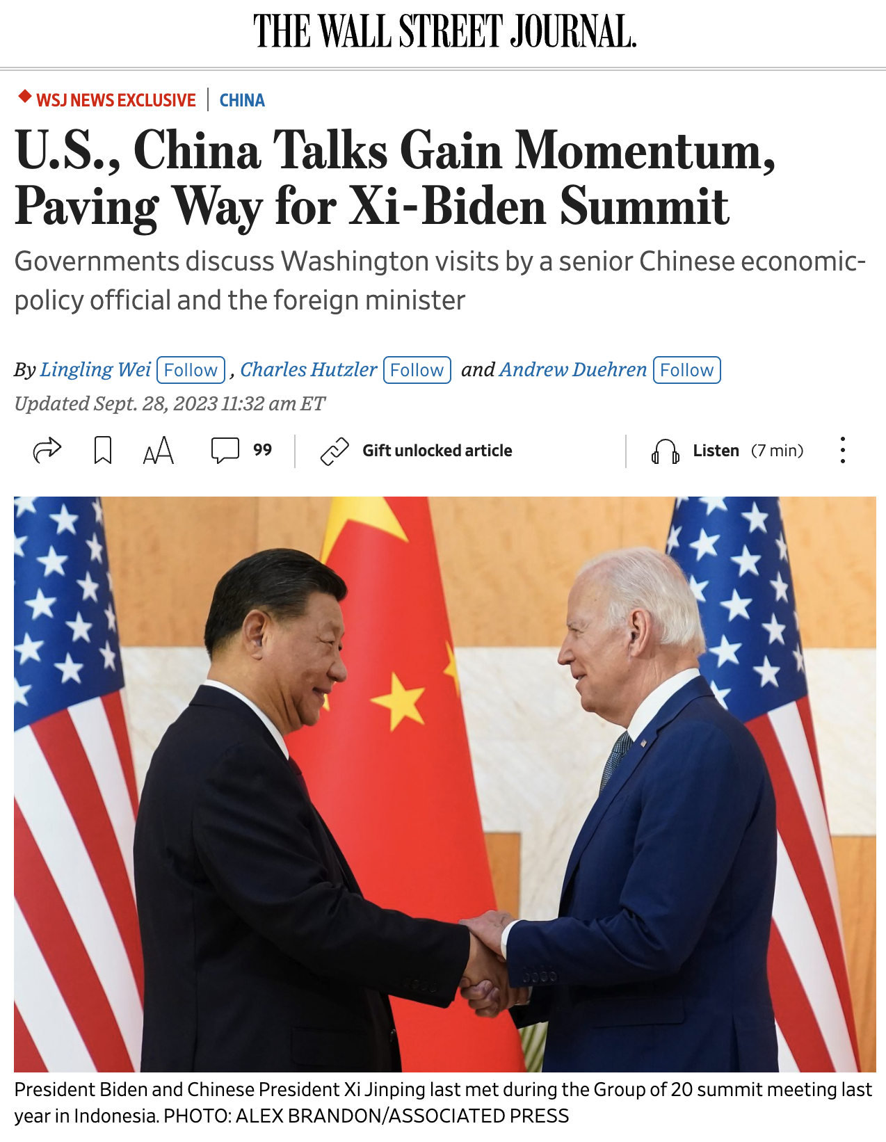 根据《华尔街日报》报道,北京和华盛顿正在采取措施改善两国的动荡关系,为中国领导人习近平访问美国铺平道路。双方正在讨论习近平的高级经济政策助手、国务院副总理何立峰访问华盛顿的计划。如果此行实现,何立峰将成为自拜登总统上任以来访问美国的最高级别中国官员。同时,计划也正在进行中,外交部长王毅将于十月访问华盛顿,为习近平与拜登之间的峰会做准备。